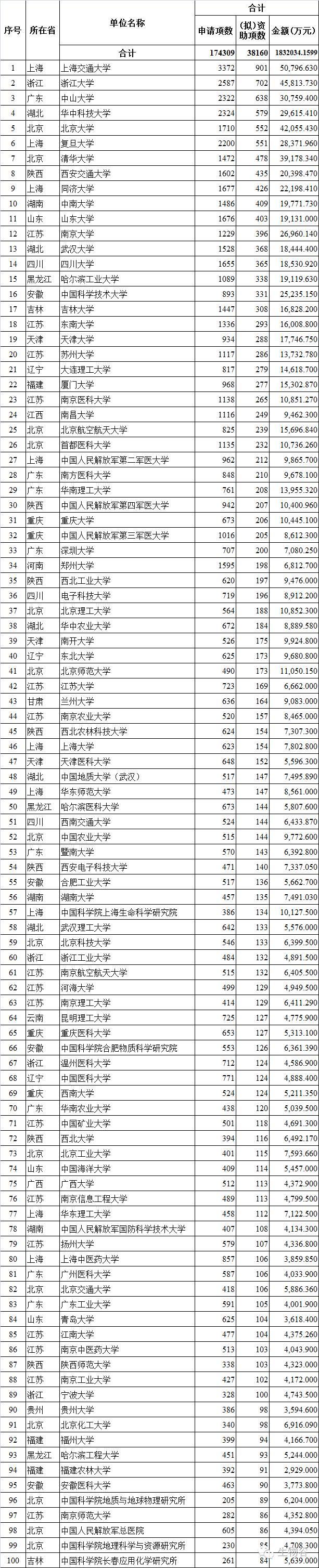2016年國家自然科學基金終于在千呼萬喚中出爐了,在此對部分高校今年獲得的國家自然科學基金情況進行了統(tǒng)計。頂尖高校表現依舊強悍,上海交通大學、浙江大學、中山大學分別排第一、第二、第三。